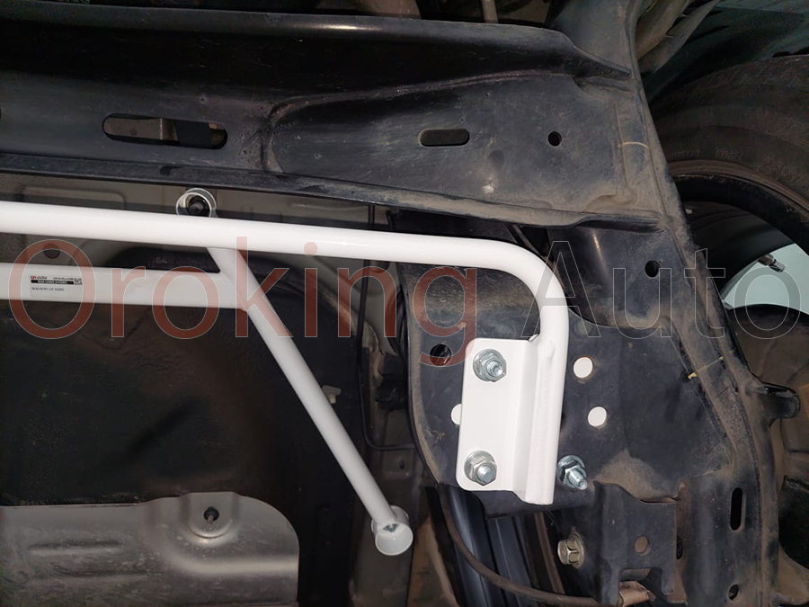 • Đặt thanh giằng Ultra Racing mới vào đúng vị trí, đảm bảo các lỗ bắt ốc khớp hoàn toàn.