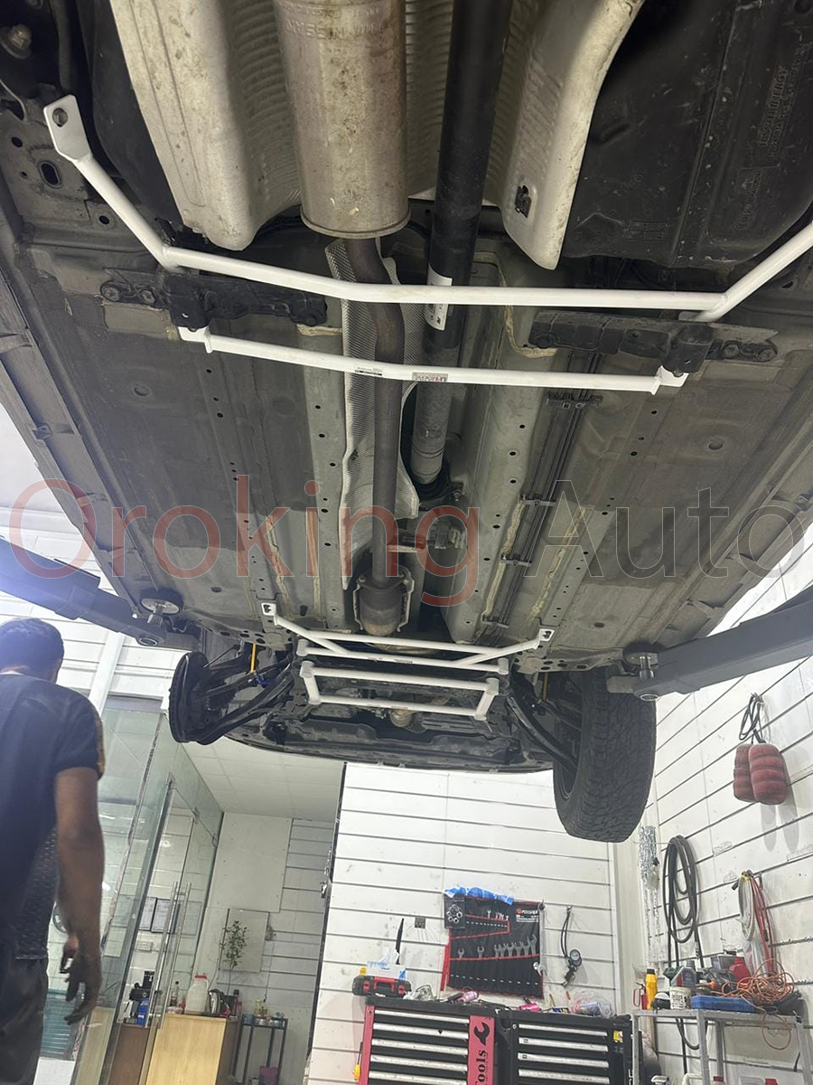Ngoài tác dụng gia cố khung, sản phẩm còn giúp bảo vệ động cơ và các chi tiết trong gầm giữa khỏi các lực va chạm hoặc rung động mạnh. Tại OroKing Auto, việc lắp đặt thanh giằng gầm giữa Nissan Xtrail chính hãng Ultra Racing được thực hiện chuyên nghiệp, đảm bảo vừa nâng cao hiệu suất vận hành, vừa giữ nguyên độ an toàn và bền bỉ của xe. Đây là lựa chọn lý tưởng cho những ai muốn tối ưu trải nghiệm lái và bảo vệ xe toàn diện.