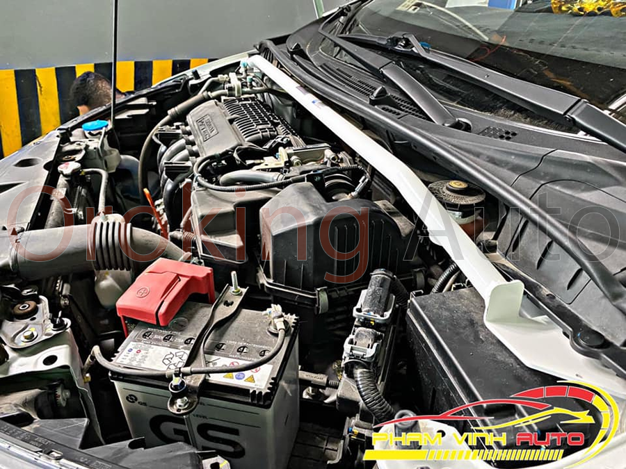- Mở nắp ca-pô và xác định vị trí thanh giằng cũ.