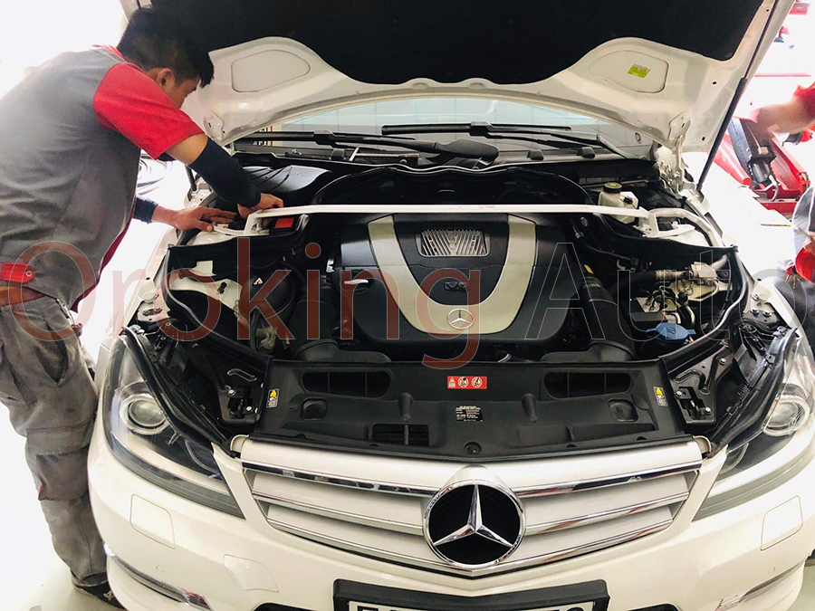 Tại OroKing Auto, kỹ thuật viên sẽ hỗ trợ lắp đặt chuẩn xác, đảm bảo xe vận hành an toàn và hiệu quả ngay sau khi nâng cấp thanh giằng khoang máy Mercedes W204 chính hãng Ultra Racing.